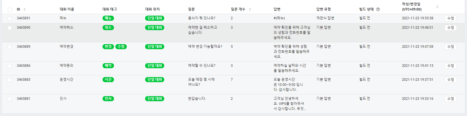 벌써 이번 주가 데이터 분석 교육 과정의 마지막 주이다. 두 달이 정말 빨리 가는 것 같다.. 1. CLOVA 챗봇 실습 이번주에는 네이버의 CLOVA CHATBOT에 대해 학습하였다. 그래서 오늘은 각자 주제를 정해 챗봇을 만들어보는 수업을 진행했다. 다음과 같이 간단하게 작성해보았다. 아직은 익숙하지 않아서 헷갈리는 부분이 많아 조금만 작성해두었다. 내일 더 배워서 자세하게 구현해봐야겠다. 2. 따릉이 대여수 예측 모델 저번 주에는 현재 우리 팀이 사용하고 있는 데이터에 적합한 모델이 XGBoost 모델이라는 사실을 알아냈다. 그리고 이를 바탕으로 오늘은 XGBoost 모델 학습을 실시했다. from xgboost import XGBRegressor, plot_tree, plot_importance ..